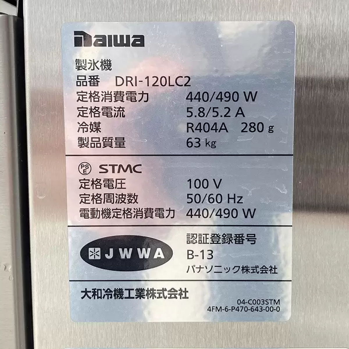 チップアイス製氷機 DRIー120LC2